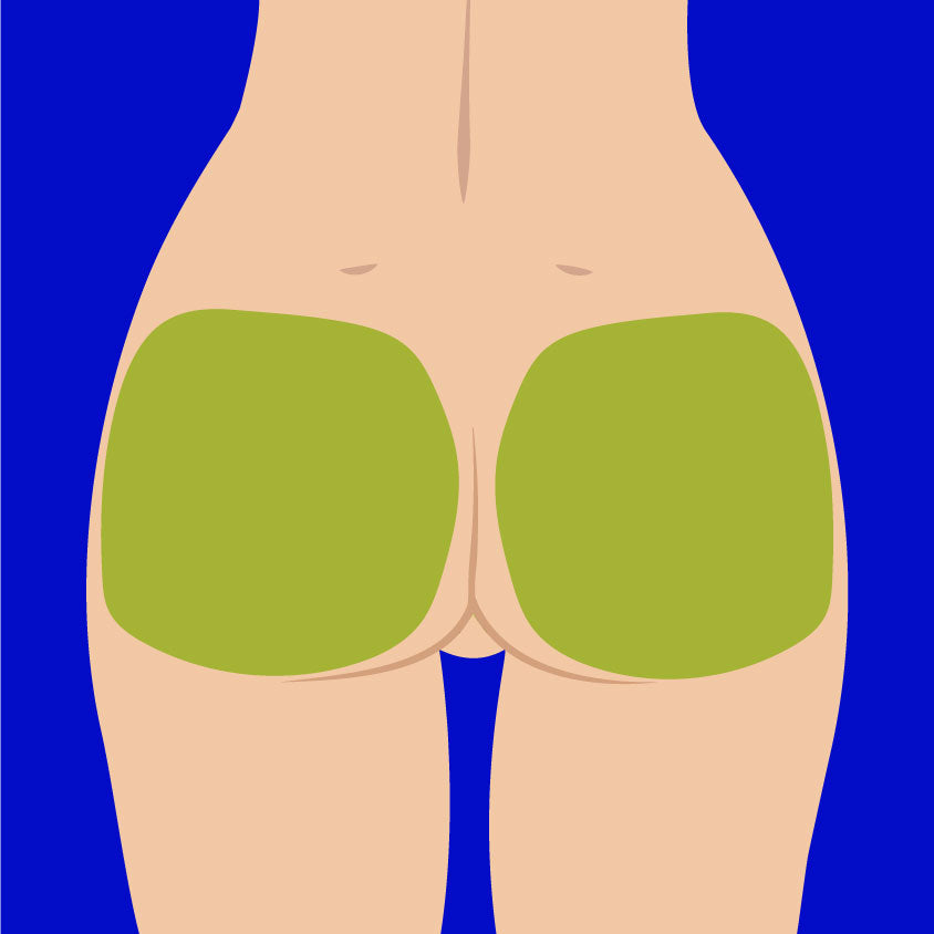 La depilación láser en el área de los glúteos remueve los vellos que se encuentran en la parte posterior de la pelvis conocida como trasero. Y, la sesión tiene una duración estimada de 15 minutos. (ver ilustración)